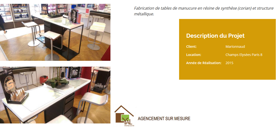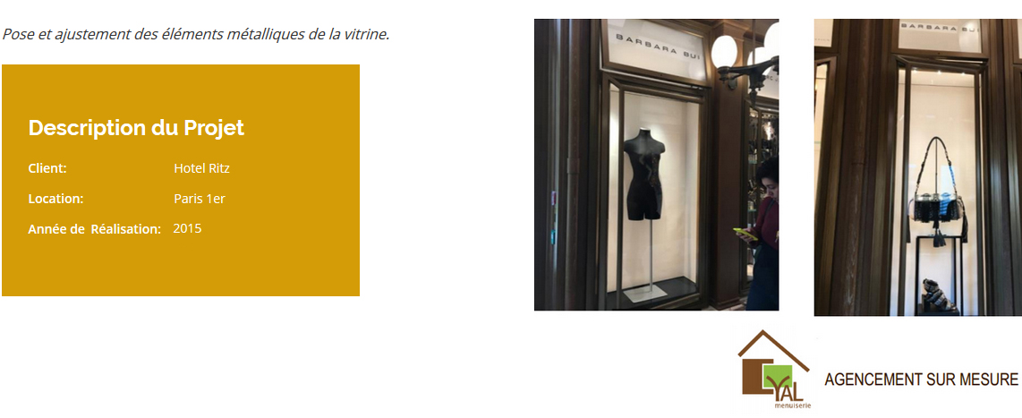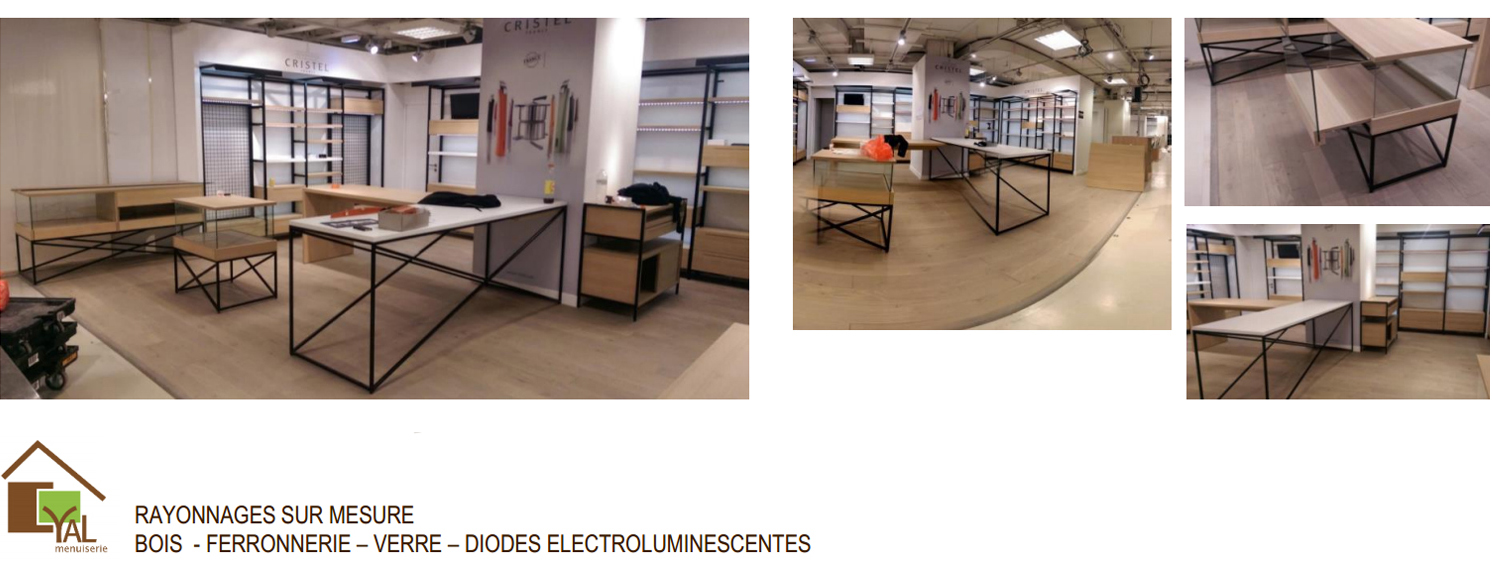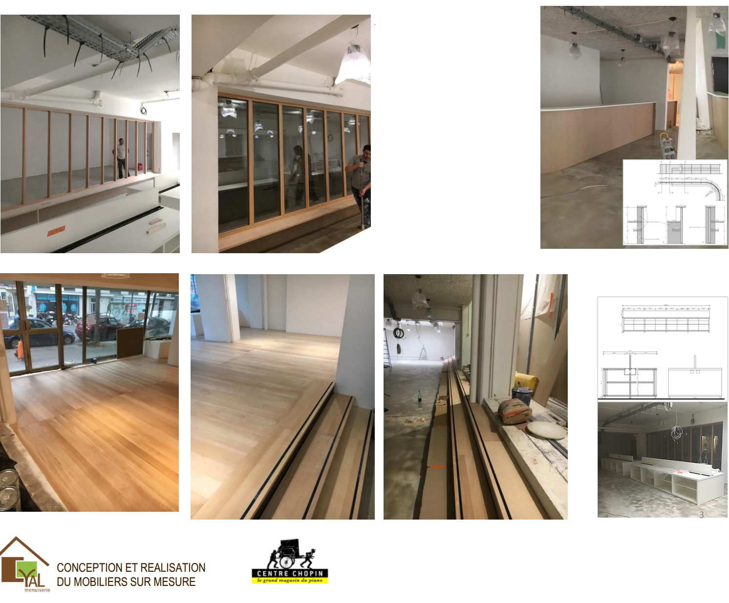 Réalisation des baies vitrées , parquet , banque d’accueil , mobiliers présentoirs, huisseries.
